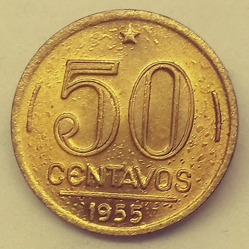 Contagem Numismática Moeda 50 Centavos 1955 Flor de Cunho