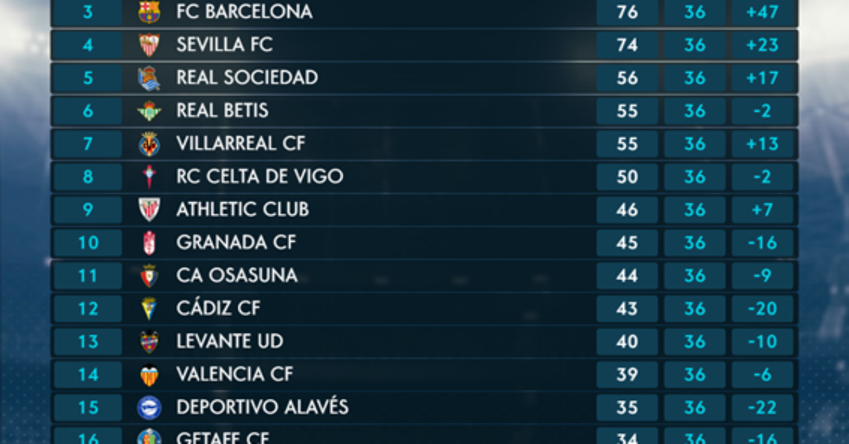 Veja como ficou a tabela do Campeonato Espanhol! Parceiros LaLiga