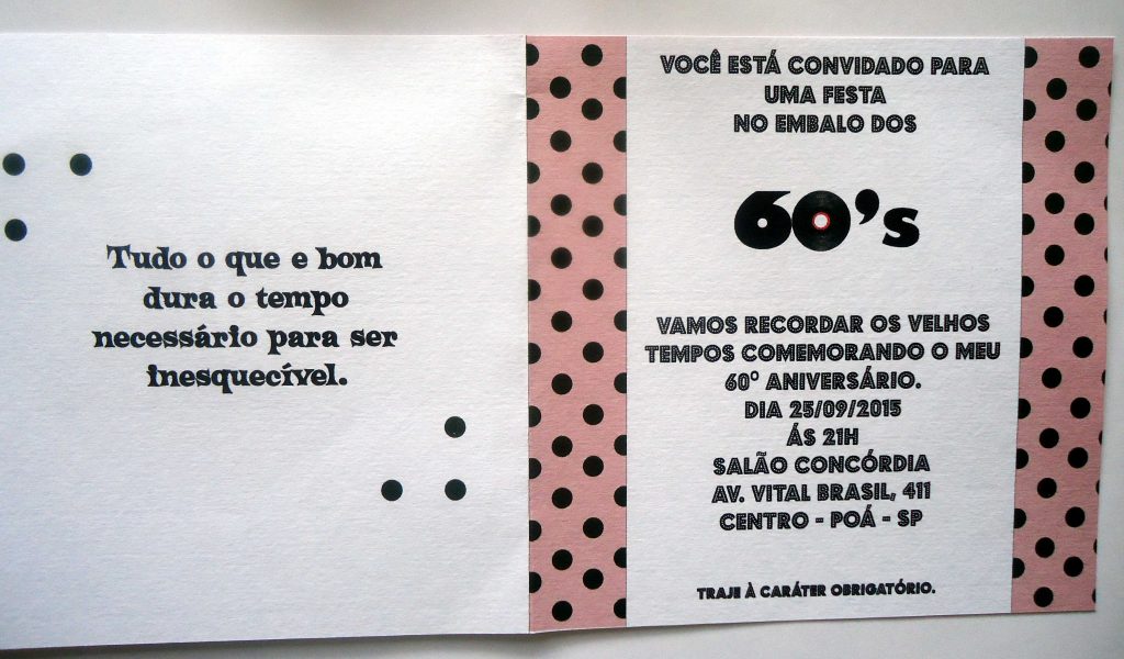 convite de 60 anos Modelos de convite para festa, Convite anos 60, Convites de aniversário de