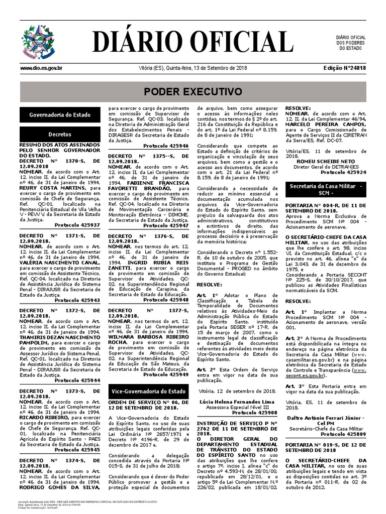 Diario Oficial 20180913 Completo Estatuto Serviços Públicos