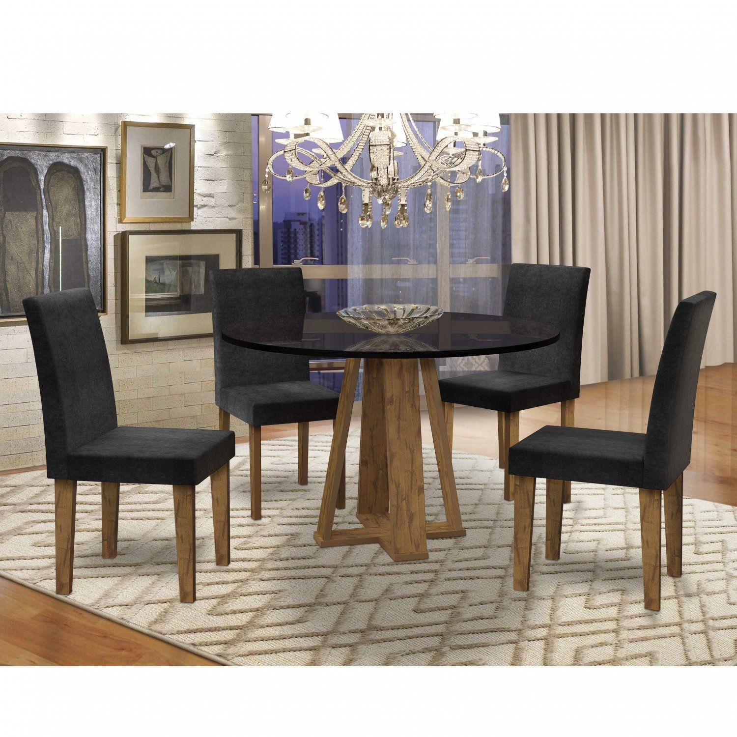 Conjunto Sala de Jantar Mesa Tampo Vidro Redonda Isabela 4 Cadeiras New Ceval Móveis Marrom