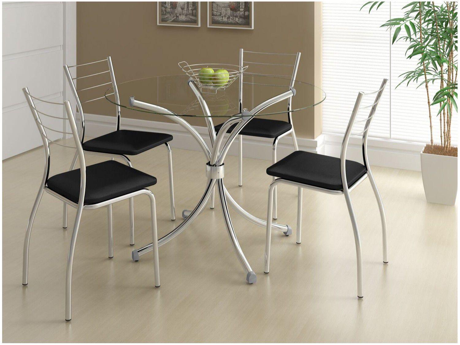 Conjunto Sala de Jantar Mesa Redonda Tampo de Vidro com 4 Cadeiras Sonetto Móveis. R$ 1.449,41. R$ 999,90. no Pix (5% de desconto) ou R$ 1.052,53 em 10x de R$ 105,25 sem juros. Mesa Redonda de Jantar Tampo c/ Vidro Moderna 90x90 Jade. R$ 631,91. R$ 531,91.
