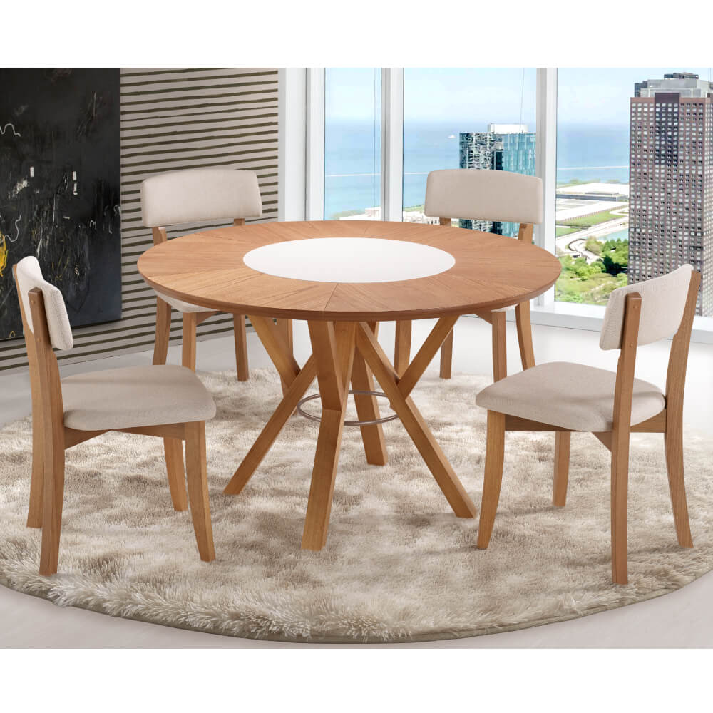 Mesa de Jantar Redonda com 4 Cadeiras e Vidro Giratório Amêndoa Moveis