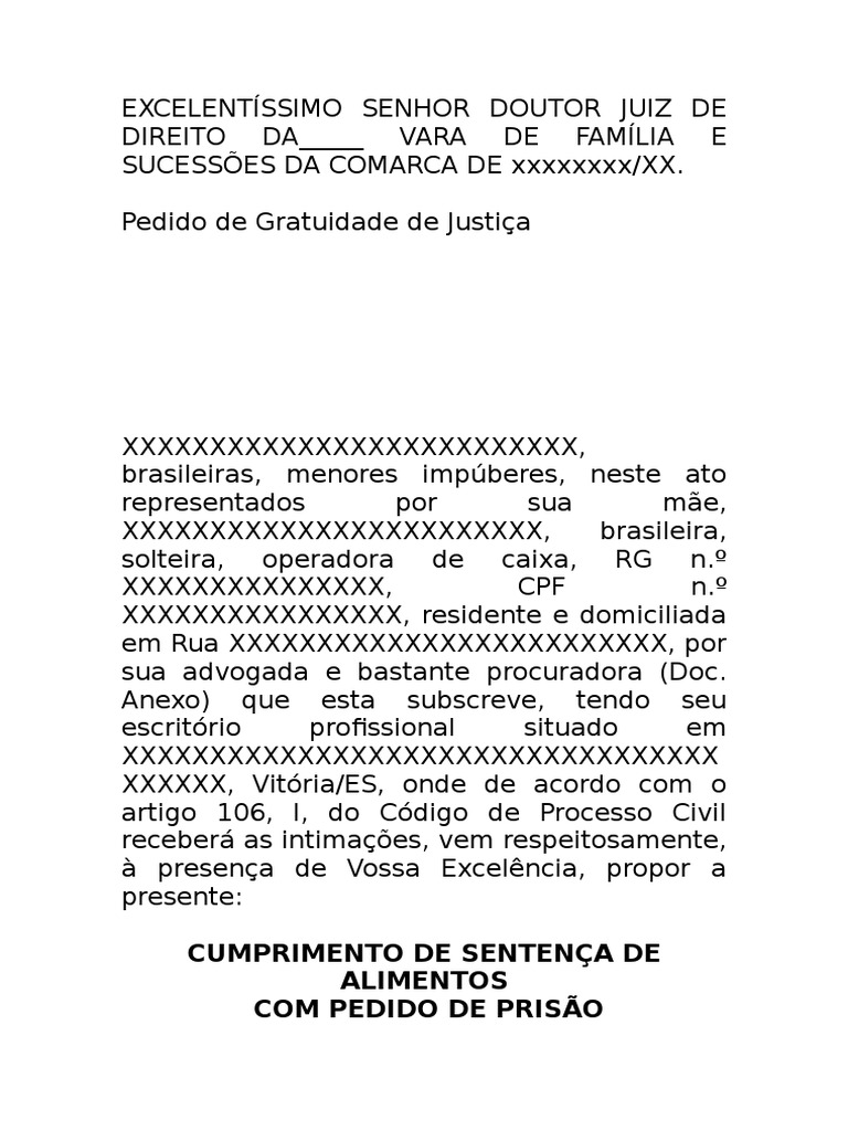 MODELO CUMPRIMENTO SENTENCA ALIMENTOS COM PRISAO.doc Política Justiça