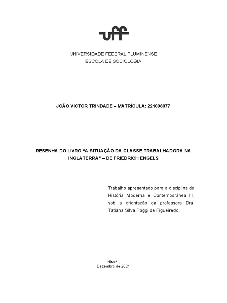 Resenha Da Obra A Situação Da Classe Trabalhadora Na Inglaterra PDF Friedrich Engels Karl Marx