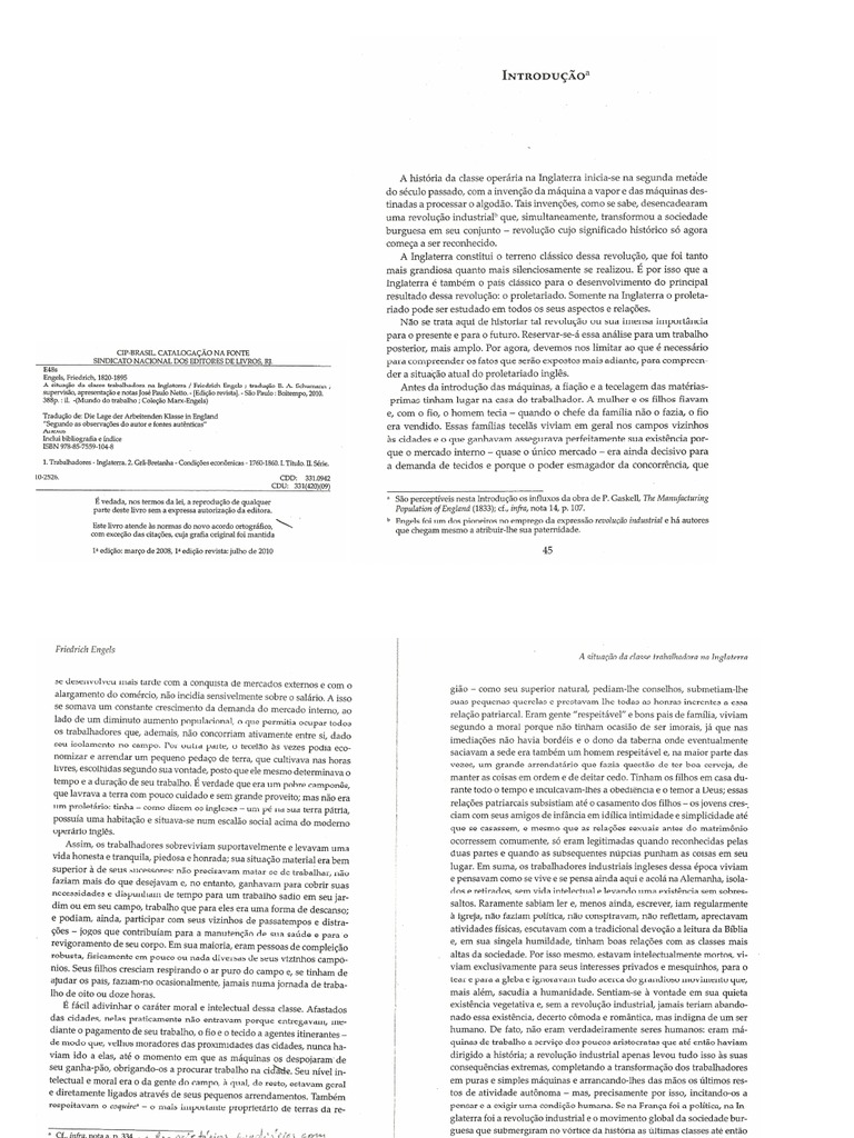 NOTA dA ediTOrA A situação da classe trabalhadora na Inglaterra, de Friedrich engels, obra clássica da tradição socialista revolucionária e referência obrigatória na bibliografia das Ciências Sociais, há muito não estava disponível para o público brasileiroa. A edição que a Boitempo agora oferece aos leitores, apresentando uma